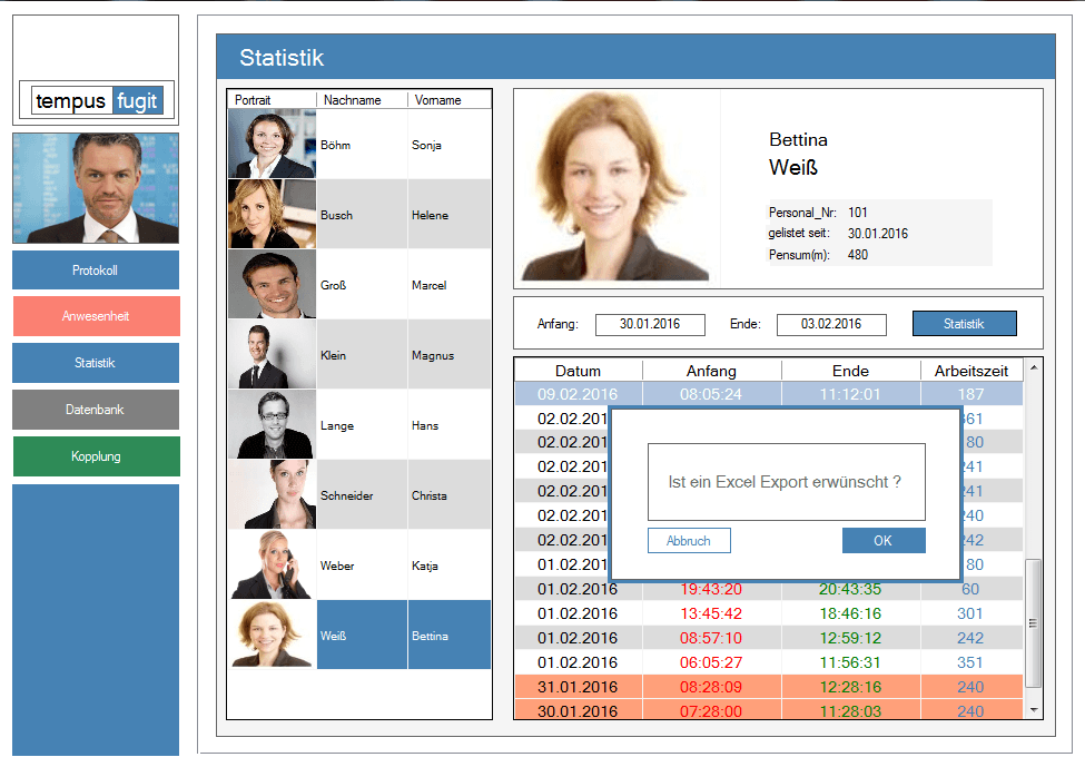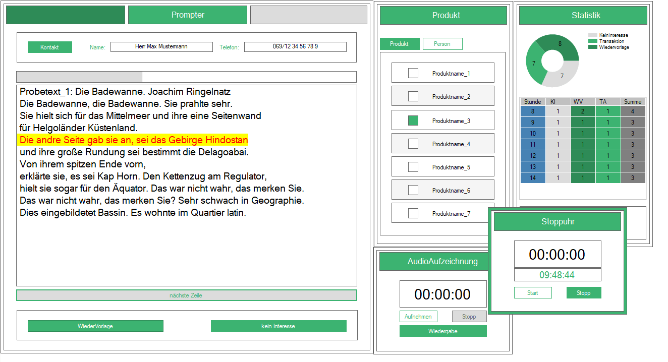 Während der Programmierung des Frontends wurde explizit darauf geachtet, dass die Komplexität der Logik nicht ersichtlich ist. So wird zum Beispiel die Verfügbarkeitsprüfung mit einem einfach zu verstehenden Lückentext vorgenommen, so dass sich auch derjenige Projektmanager, der sich gerne in einem linguistischen Umfeld bewegt, wohlfühlen kann. Zudem ist die Softwarehandhabung zeiteffizient, da alle Funktionalitäten aufgrund einer smarten Programmstruktur mit maximal zwei Mausklicks erreicht werden können. Überdies werden nur der momentanen Sachlage dienlichen Funktionsschaltflächen angezeigt. Durch dieses Konzept wird die Schar der Alternativen reduziert und der Bedienungskomfort erhöht.