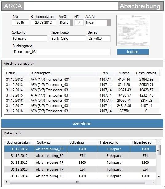 Arca ist ein leicht zu bedienendes Buchführungs- und Bilanzanalyseprogramm. Insbesondere der Laie wird an die Hand genommen und mit Hilfe von smarten Eingabemasken umfangreich unterstützt. Mit einer solchen kann zum Beispiel eine Intervallbuchung schnell und einfach definiert und durchgeführt werden, so dass der Fehlerteufel keine Chance hat.